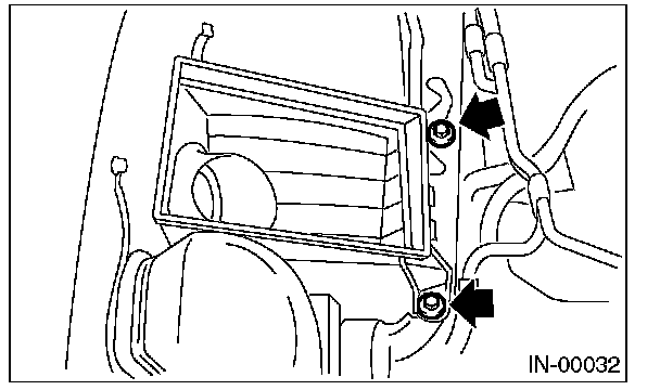 7) Remove the bolts which install air cleaner case to vehicle body.