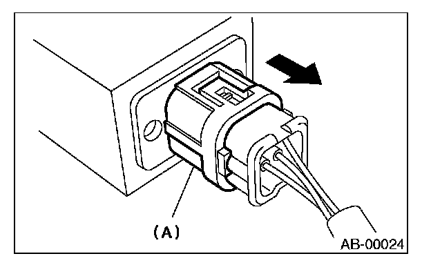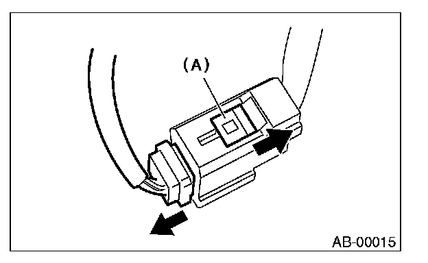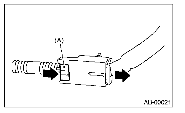 2. With the lock arm (A) pushed in, pull the connector in the direction of arrow, and then disconnect the connector.