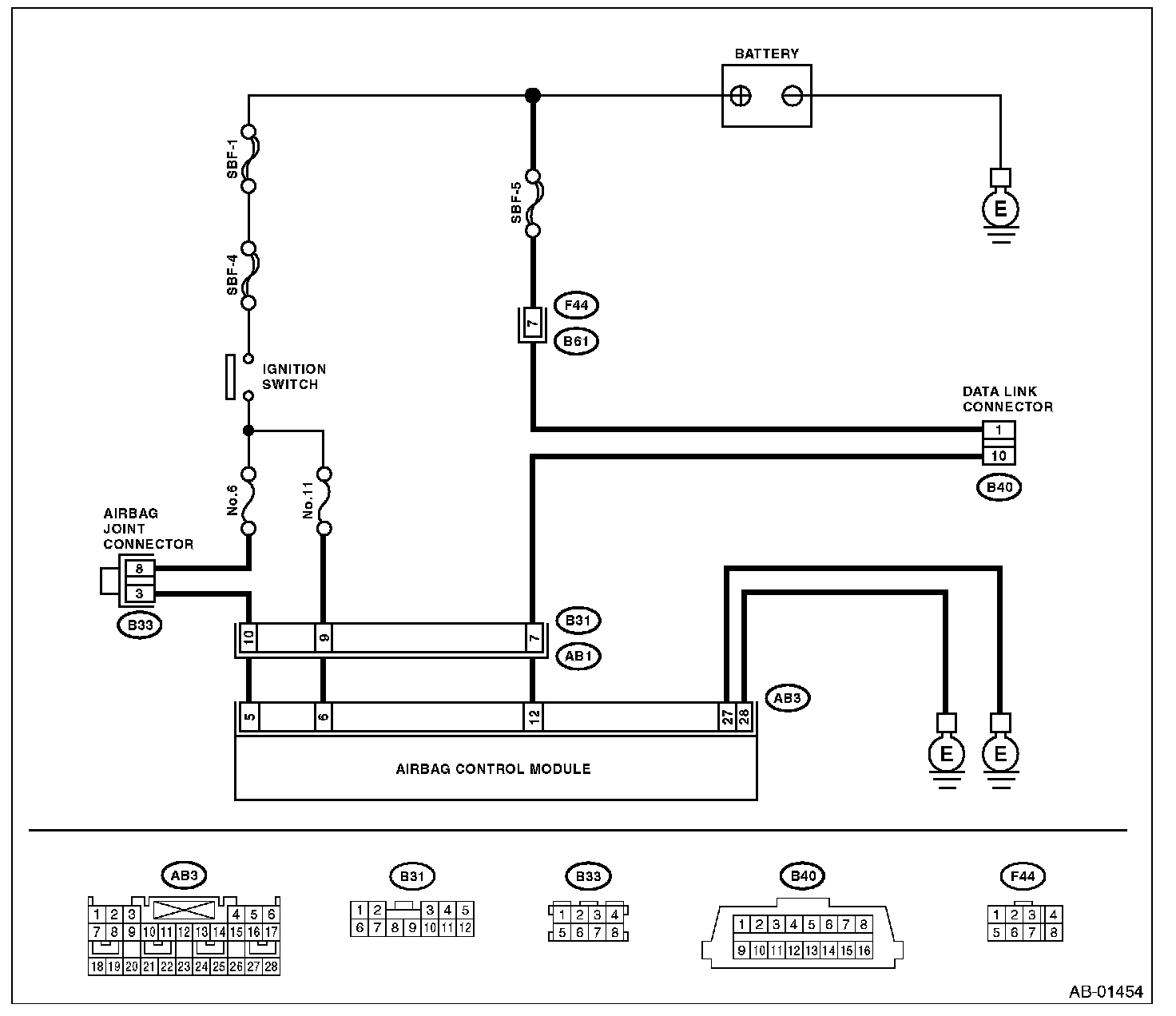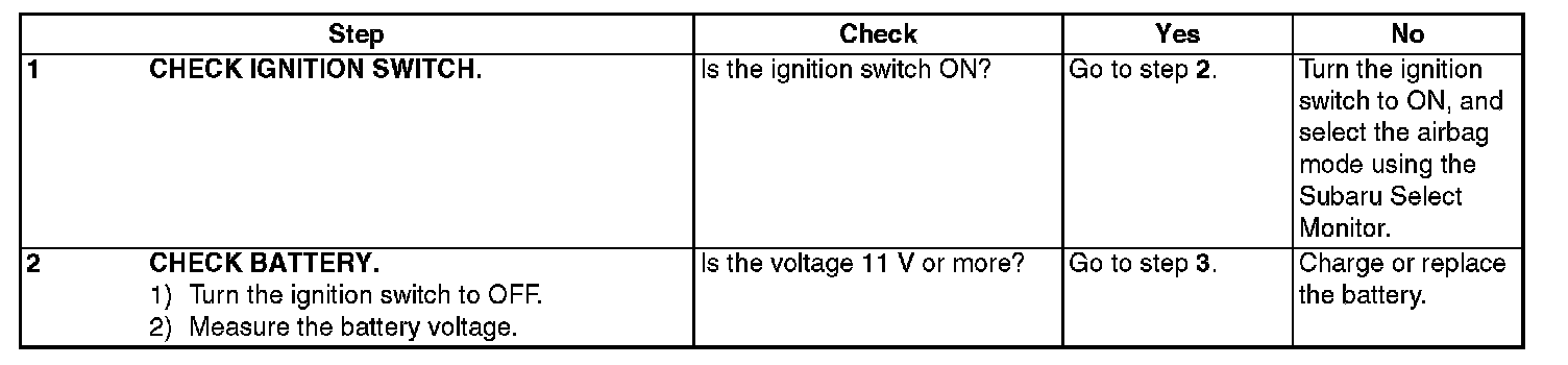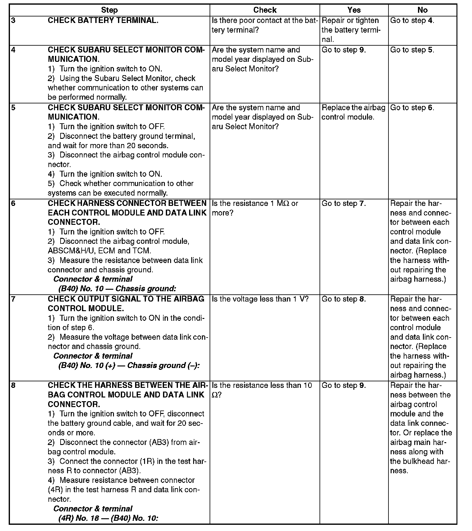 Communication is impossible between the airbag control module and the Subaru Select Monitor.