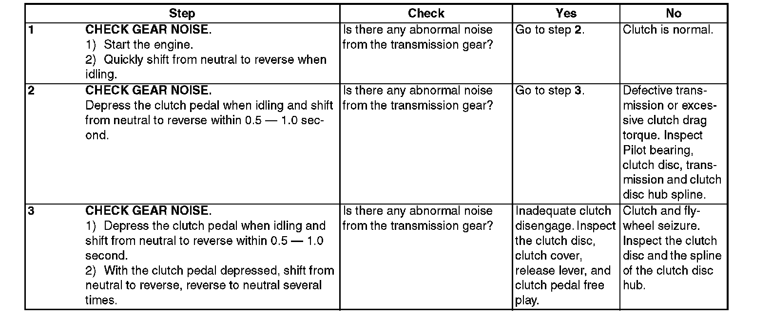 DIAGNOSTIC DIAGRAM OF CLUTCH DRAG