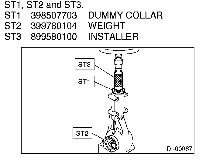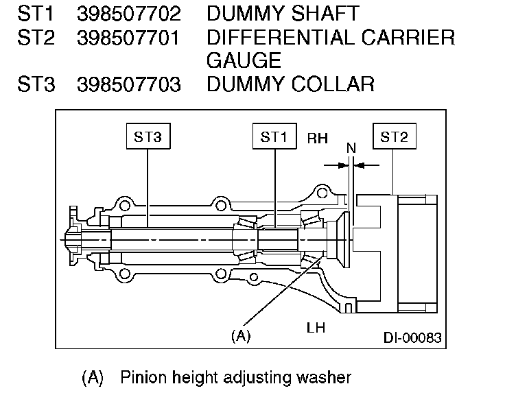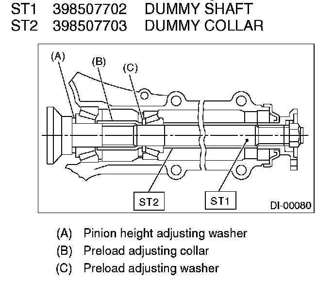 1. Set the previous pinion bearing pre-load adjustment to a completed state for the ST1, ST2 and ST3.