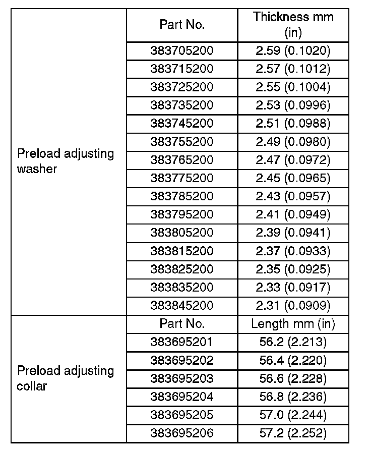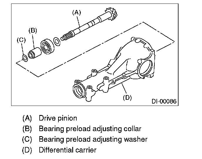 Adjust the bearing preload between front and rear bearings with collar and washer. Pinion height adjusting washer is not affected by this adjustment. The adjustment must not be carried out with oil seal inserted.