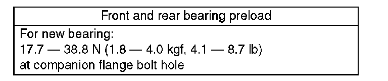 Total preload. 20.7 - 54.4 N (2.1 - 5.5 kgf, 4.7 - 12.2 lb)
