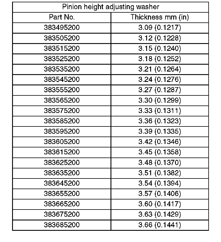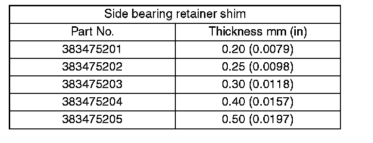 Side gear backlash: 0.10 - 0.20 mm (0-0039 - 0.0079 inch)