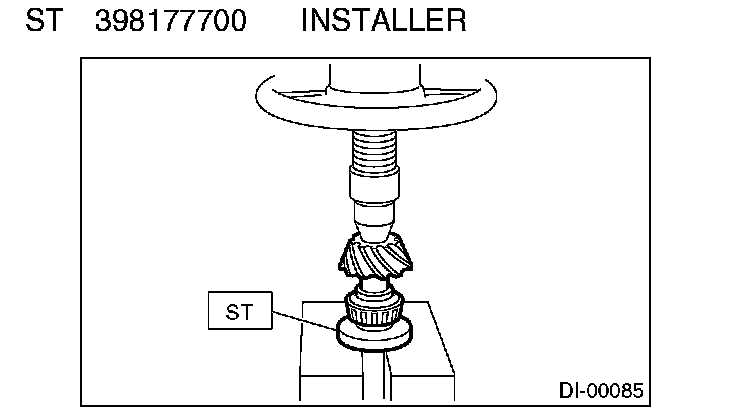 3. Install the selected pinion height adjusting washer on drive pinion, and press the rear bearing cone into position with ST.