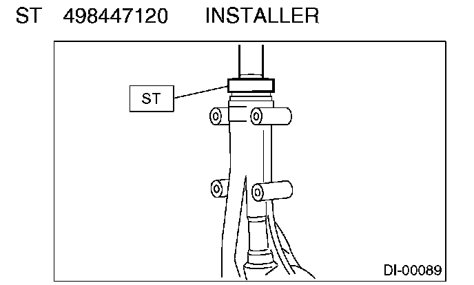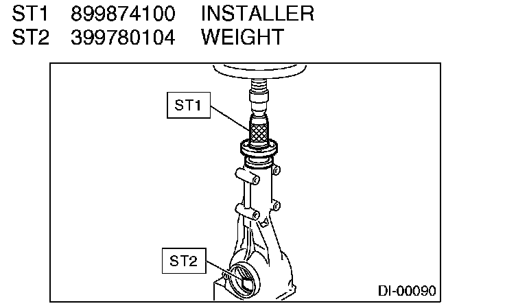 1. Install the rear bearing race (rear) into differential carrier with ST1 and ST2.