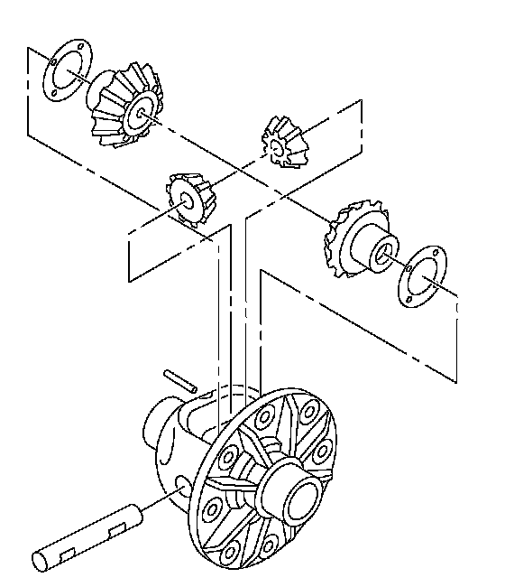 11. Assembling differential case Install the side gears and pinion mate gears, with their thrust washers and pinion mate shaft, into the differential case. (Model without LSD)