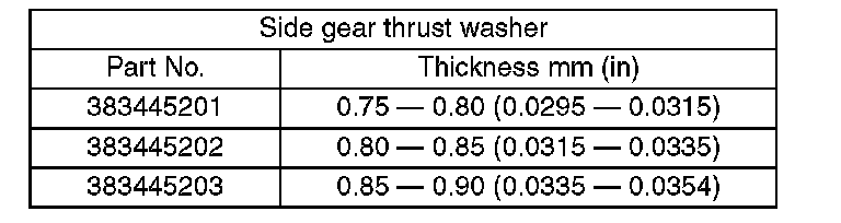 2. Adjust the side gear backlash as specified by selecting side gear thrust washer.