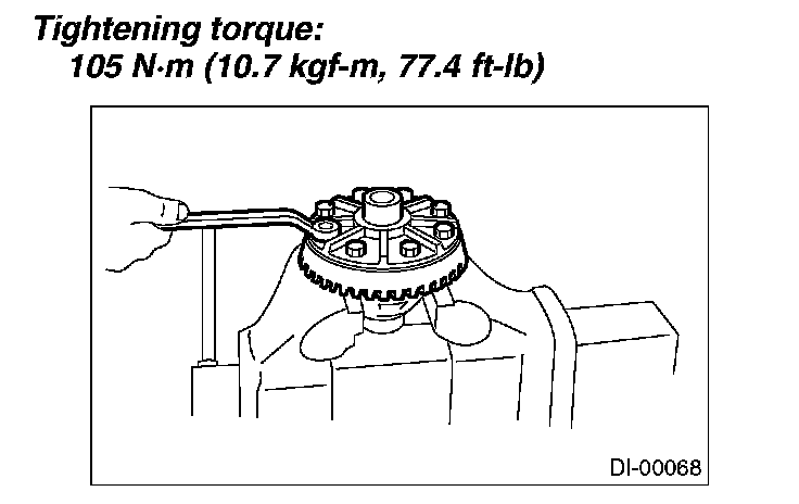 Tightening torque: 105 Nm (10.7 kgf-m, 77.4 ft. lbs.)