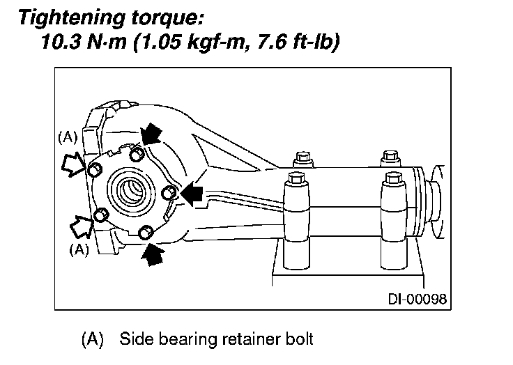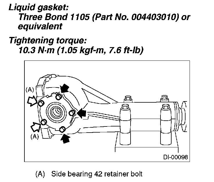 24. (A) Apply liquid gasket to the bolt of arrow mark, and install the side bearing retainer.