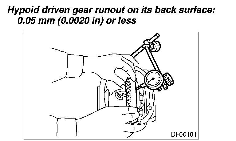 Hypoid driven gear runout on its back surface: 0.05 mm (0.0020 inch) or less