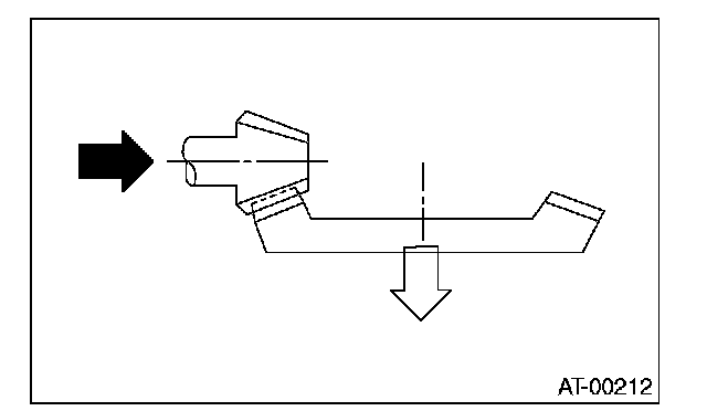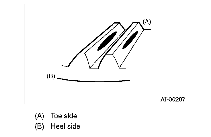 ^ When backlash exceeds 0.2 mm (0.0079 inch): Reduce the hypoid driven gear back surface shim thickness and increase the hypoid driven gear tooth surface side shim thickness.