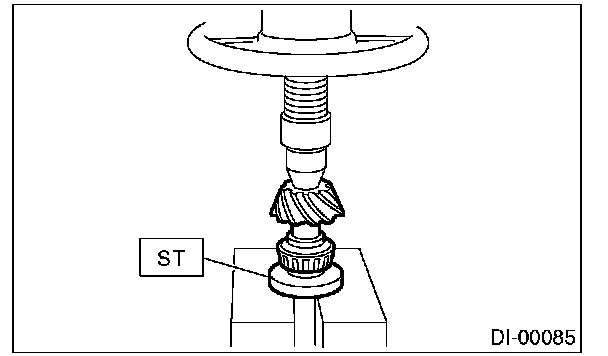 3) Install the selected pinion height adjusting washer on drive pinion, and press the rear bearing cone into position with ST.