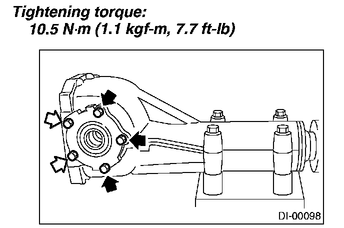 24) Apply liquid gasket to the bolt with arrow mark, and install the side bearing retainer.