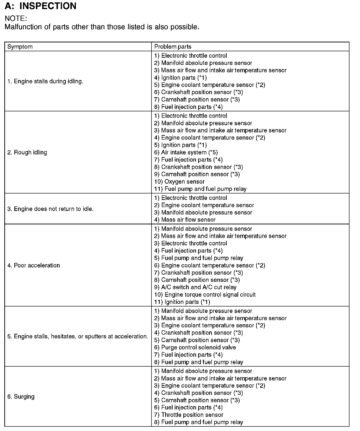 GENERAL DIAGNOSTIC TABLE