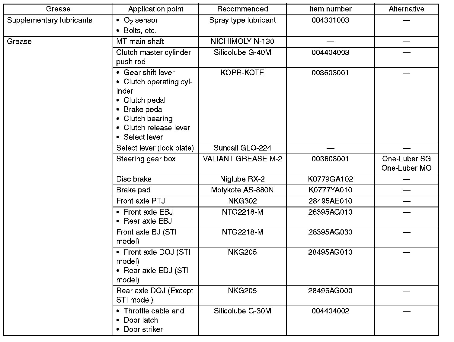 Use either the lubricants in the table or equivalent lubricants. See the table to choose the correct SAE viscosity.