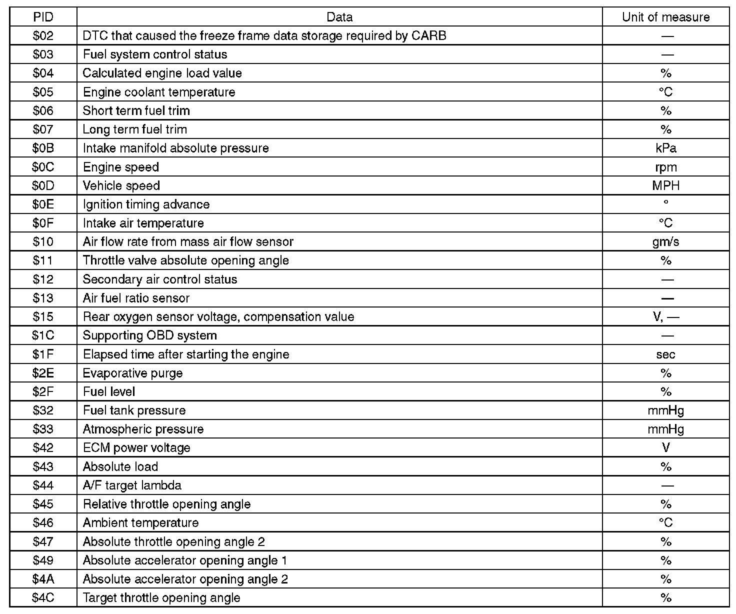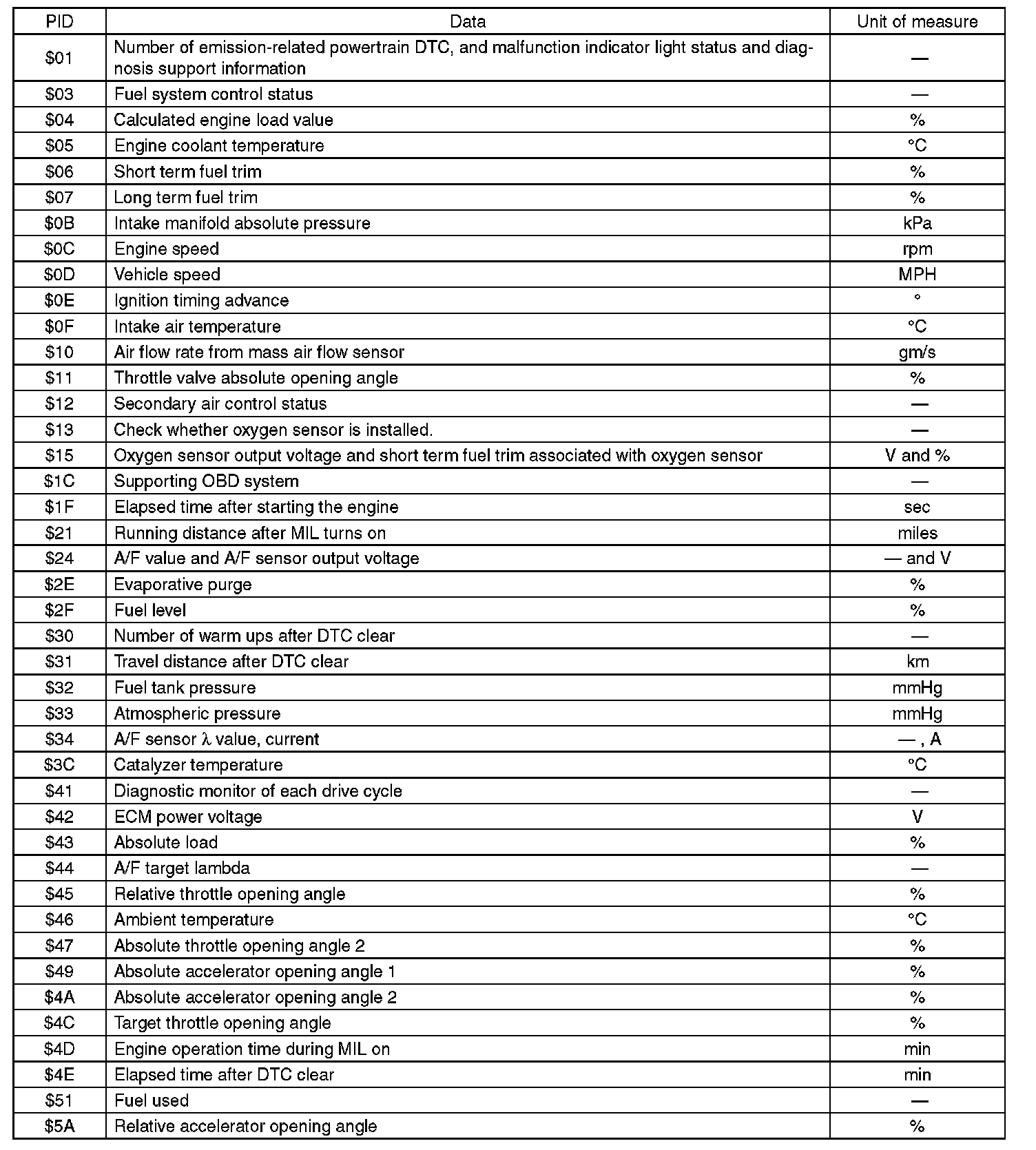 NOTE: Refer to general scan tool manufacturer's instruction manual to access generic OBD-II PIDs (MODE $01).