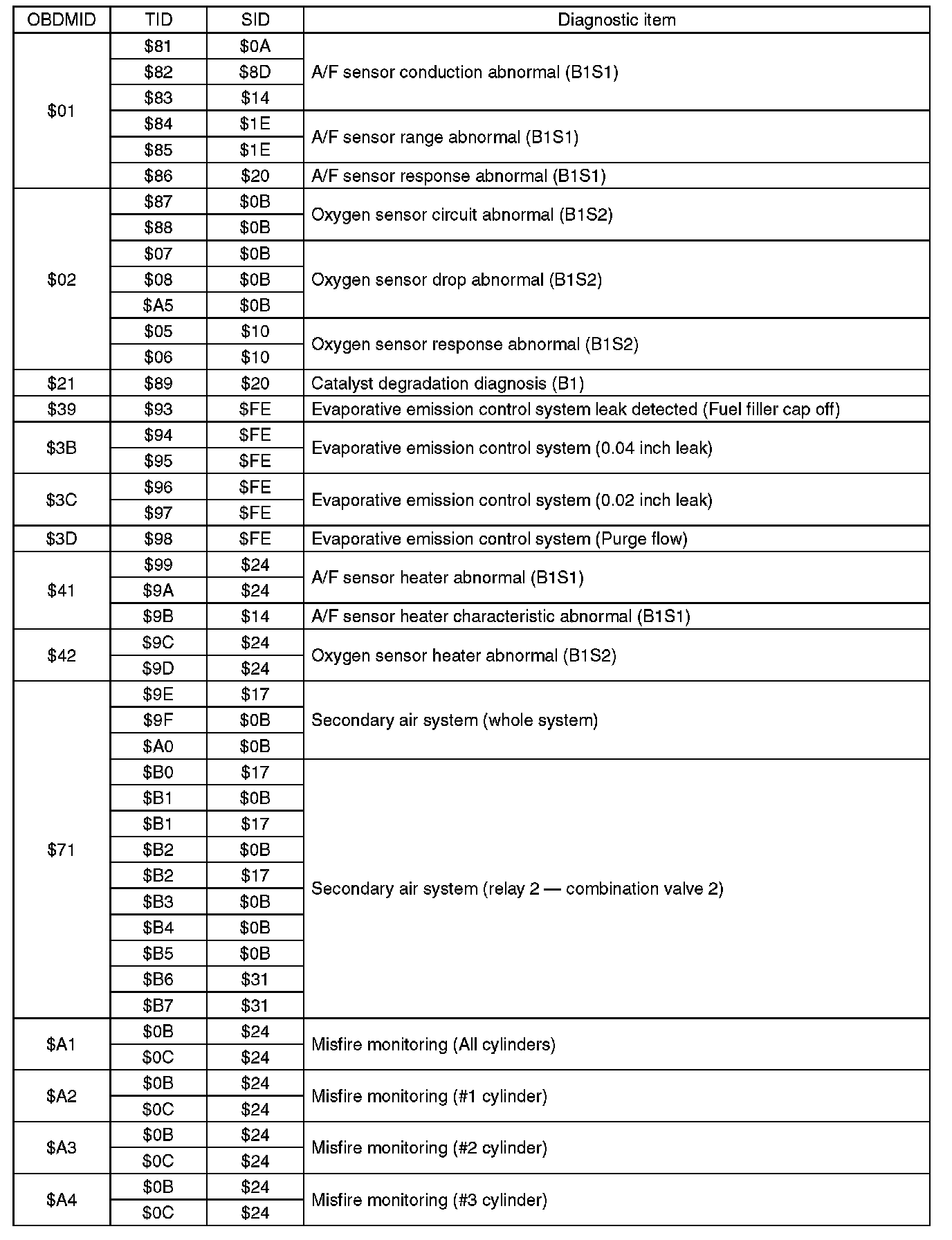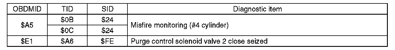 7. MODE $09: Request vehicle information Read out the data according to repair procedures. (For detailed operation procedure, refer to the general scan tool instruction manual.)