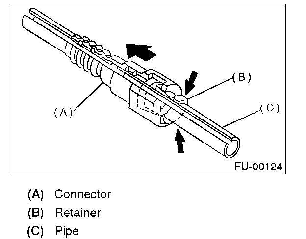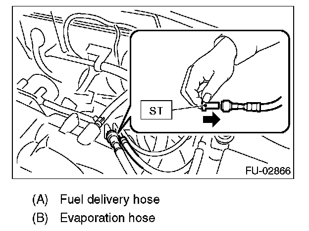 1. Disconnect the quick connector of the fuel delivery line by pushing the ST in the direction of the arrow.