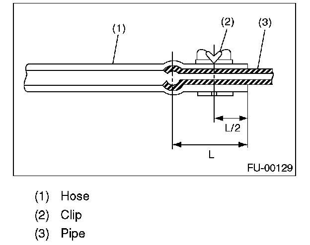 Fuel evaporation hose: L = 17.5 ± 2.5 mm (0.689 ± 0.098 in)
