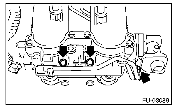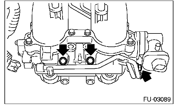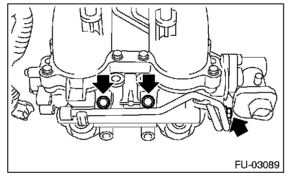 8. Remove the bolt which holds fuel injector pipe onto intake manifold.