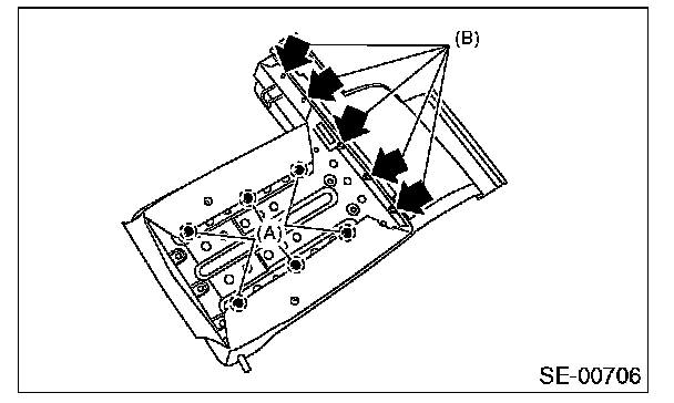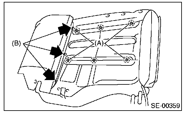 10. Remove the hog rings (B) on the front side of backrest, and then remove the backrest cover.