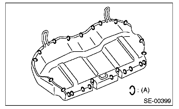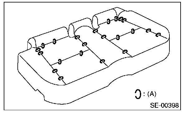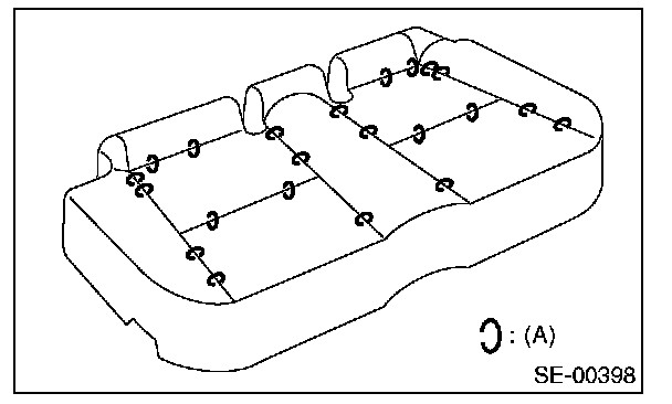 18. Remove the hog rings (A) on the rear side of the seat cushion.