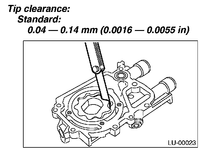 Measure the clearance between oil pump inner rotor and oil pump cover. If the clearance exceeds the limit, replace rotor or oil pump case.