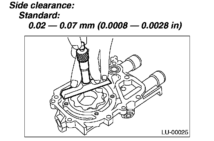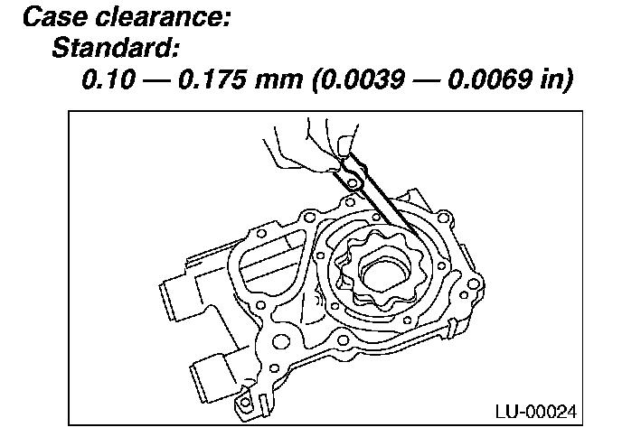Measure the clearance between outer rotor and oil pump case. If the clearance exceeds the limit, replace the rotor.