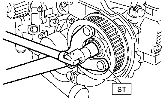 1. Install the cam sprocket No. 1 and No. 2. To lock the camshaft, use the ST.