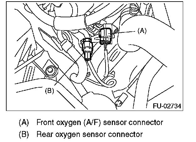 4. Remove the clip fastening the harness and disconnect the rear oxygen (A/F) sensor connector.