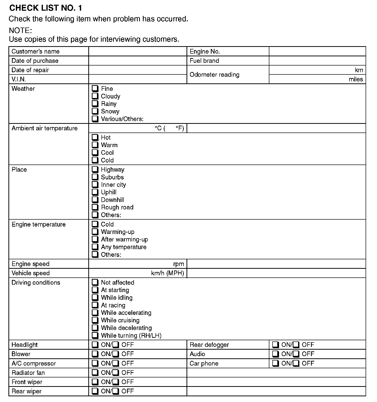 Check List No.1:
