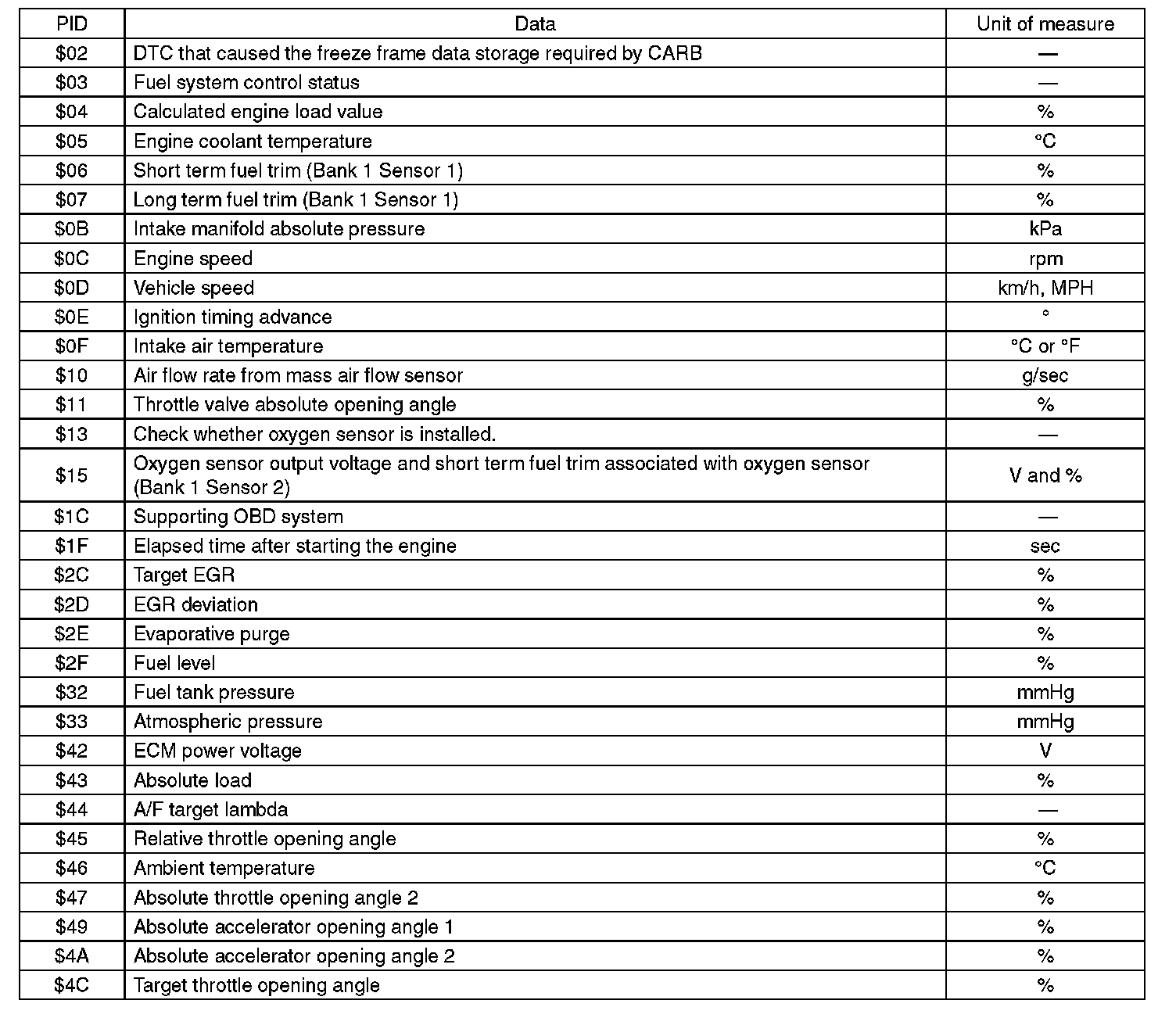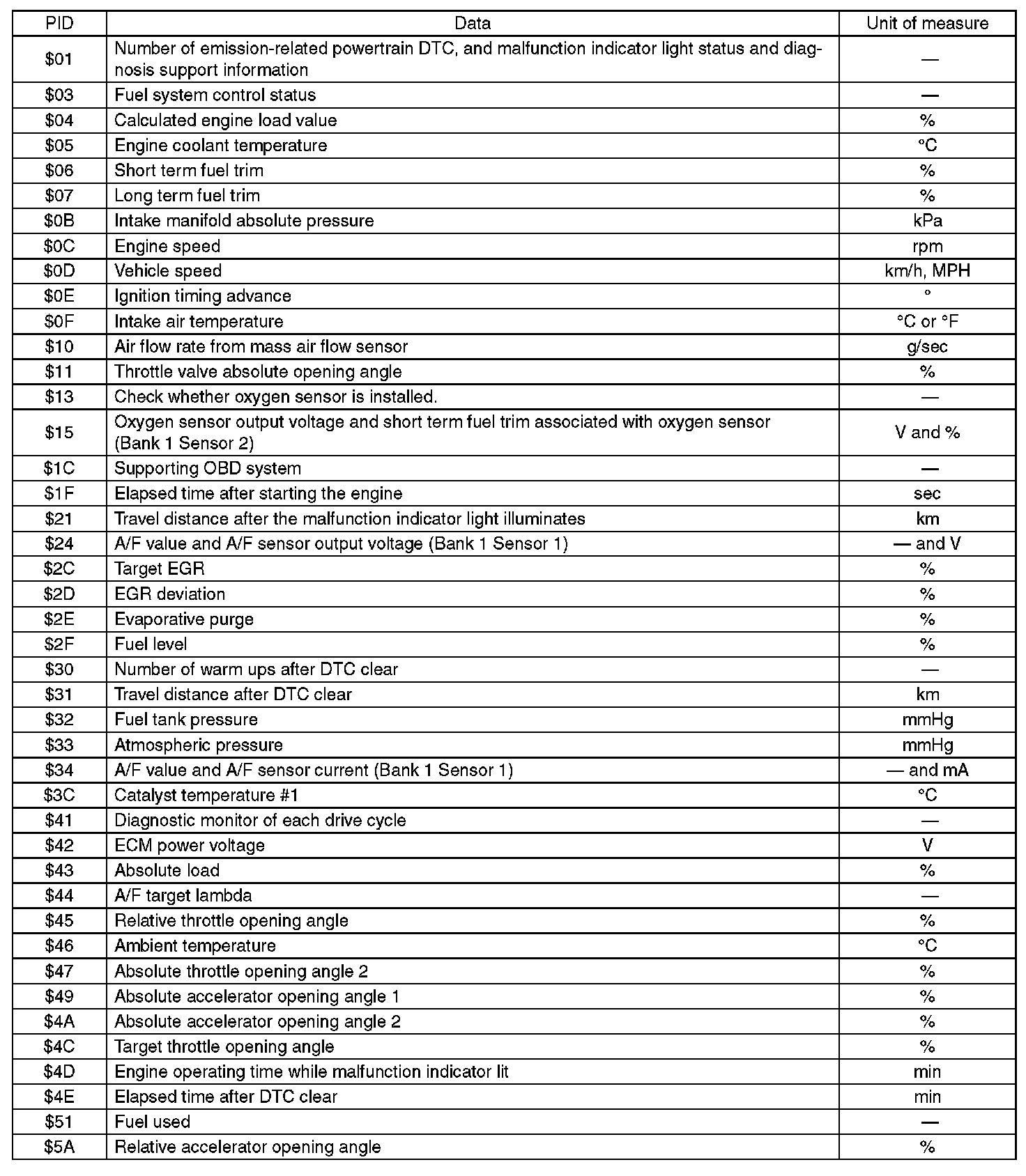 NOTE: Refer to general scan tool manufacturer's instruction manual to access generic OBD-II PIDs (MODE $01).