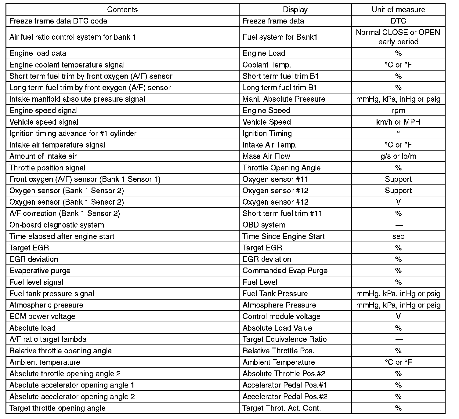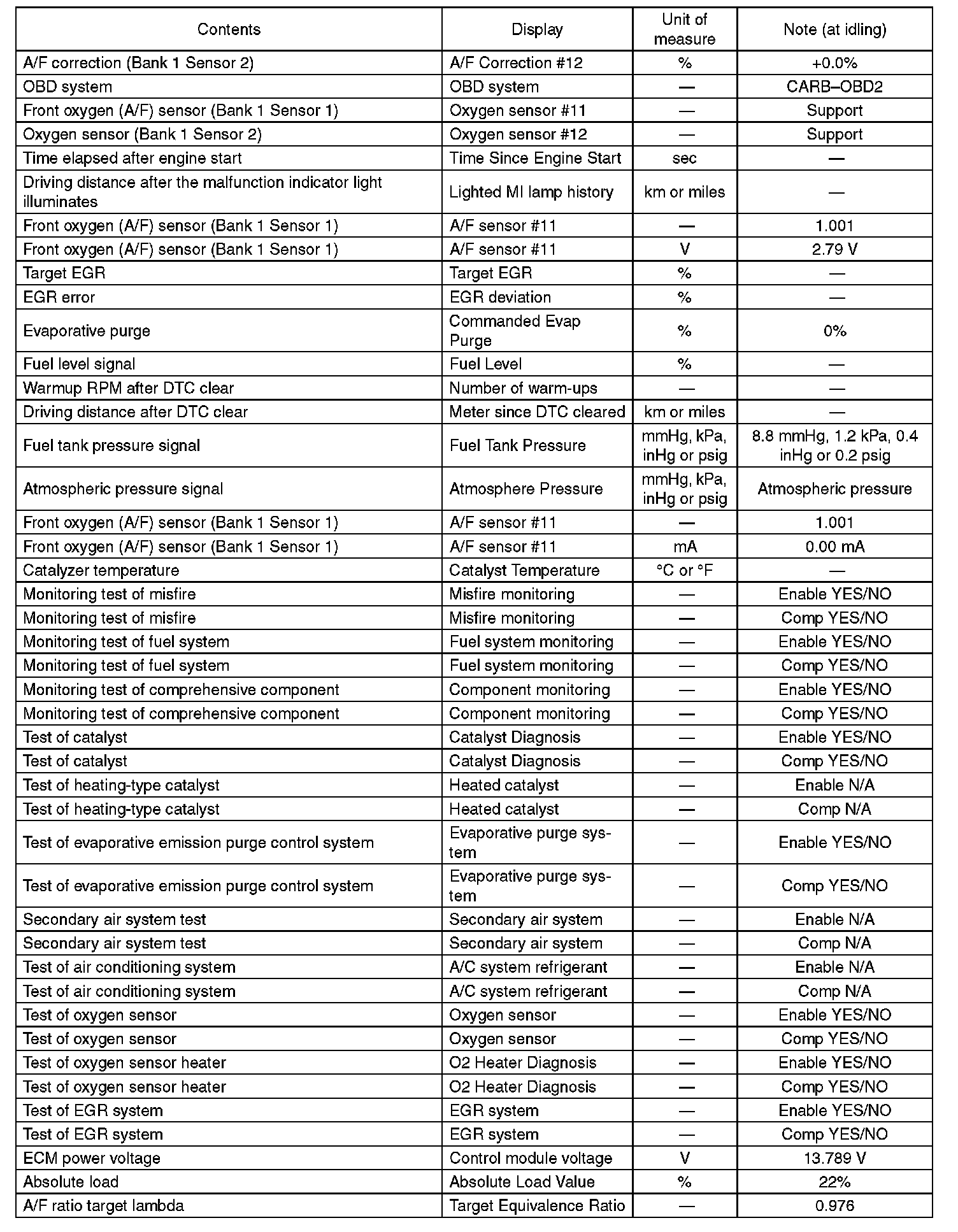 5. READ CURRENT DATA FOR ENGINE (OBD MODE)