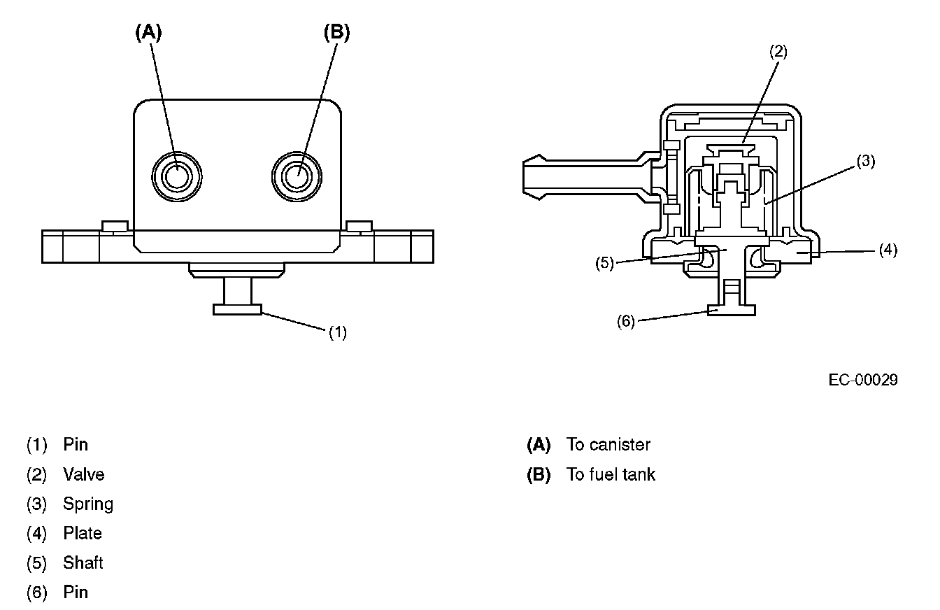 The shut-off valve is located at the top of the fuel filler pipe. When a filler gun is inserted into the filler pipe, the shut-off valve closes the evaporation line.