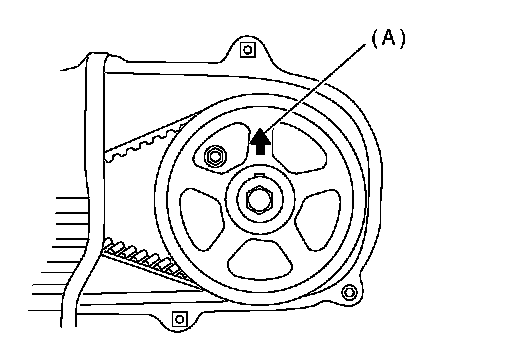 NOTE: When the arrow mark (A) on cam sprocket (LH) comes exactly to the top, #1 cylinder piston is brought to the top dead center of compression stroke.