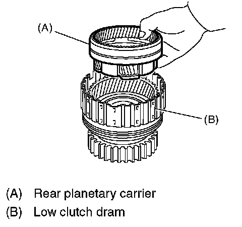 Install carefully while slowly rotating the low clutch and planetary gear assembly paying special attention not to damage the seal ring.