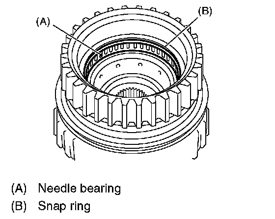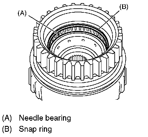 1. Install the needle bearing, and then secure with the snap ring.