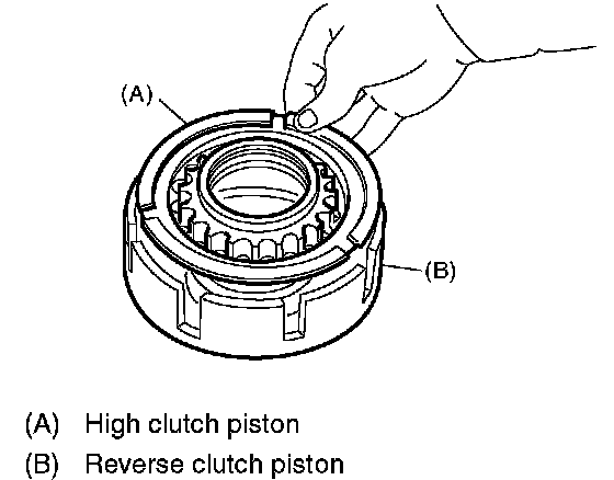 2. Install the high clutch piston to reverse clutch piston.