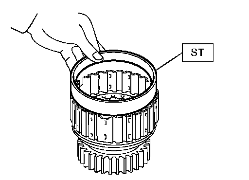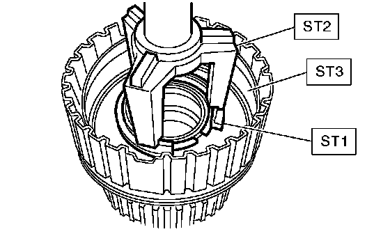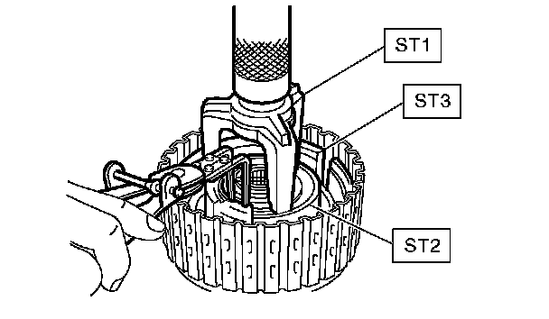 7. Install the snap ring using ST1 and ST2.
