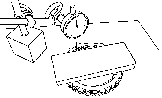 8. Place the dish plate, driven plate, drive plate and retaining plate neatly in this order on surface table. 9. Set the micro gauge to retaining plate, and read its scale.