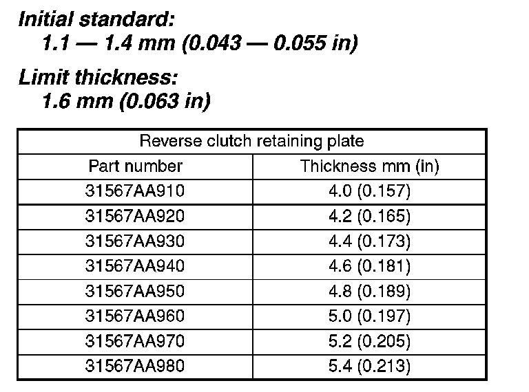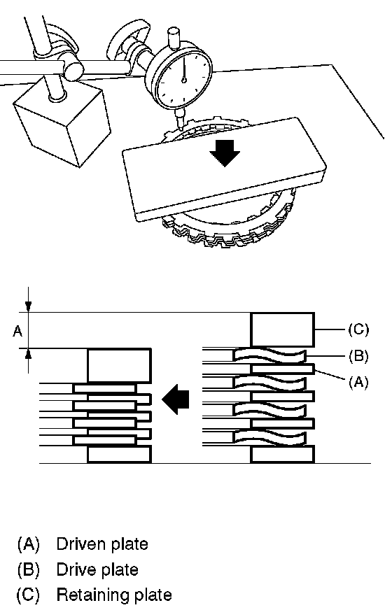 Select the retaining plate within the specification by calculating with A and B dimensions which have been recorded before. If the calculated value exceeds the usage limit, replace the drive plate with a new one and adjust it within the specification.