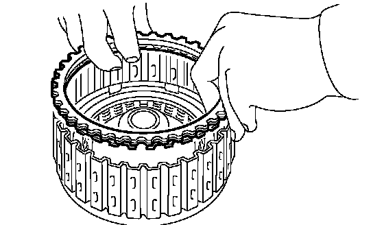 14. Install the thickest driven plate to piston side, and then install the driven plate, drive plate, retaining plate to high clutch drum.