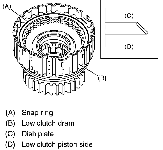 2. Check the clearance between retaining plate and low clutch operation.