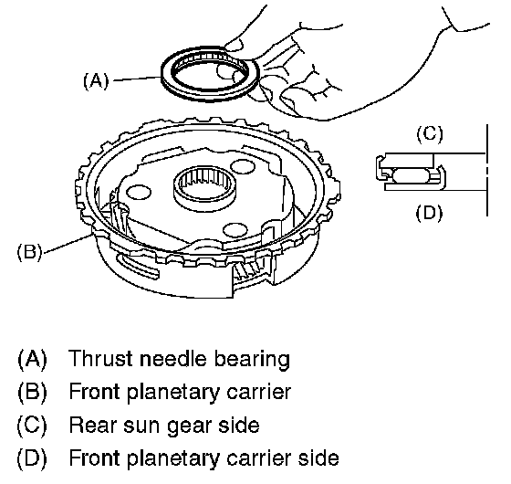 14. Install the thrust needle bearing in correct direction.