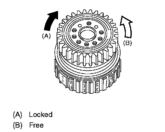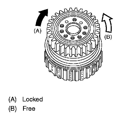 3. Set the inner race. Make sure that the clutch locks in the clockwise direction and rotates freely in the counterclockwise direction.