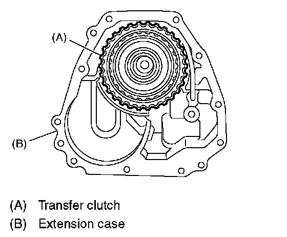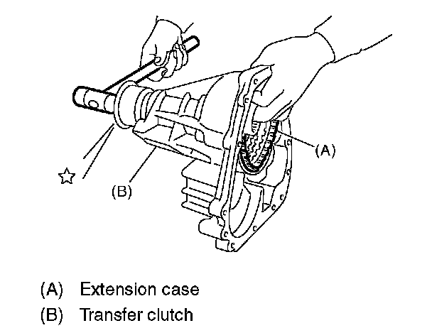 1. Take out the transfer clutch by lightly tapping the end of rear drive shaft.