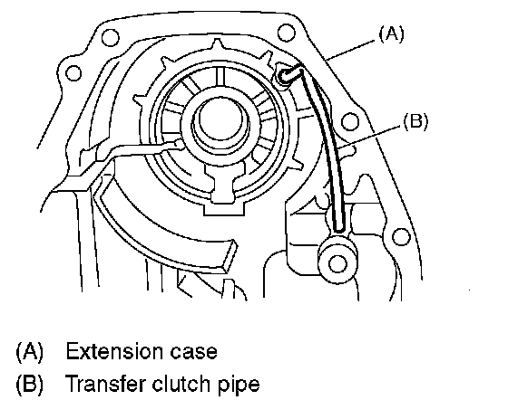 3. Install the transfer clutch pipe to extension case without deforming the pipe.