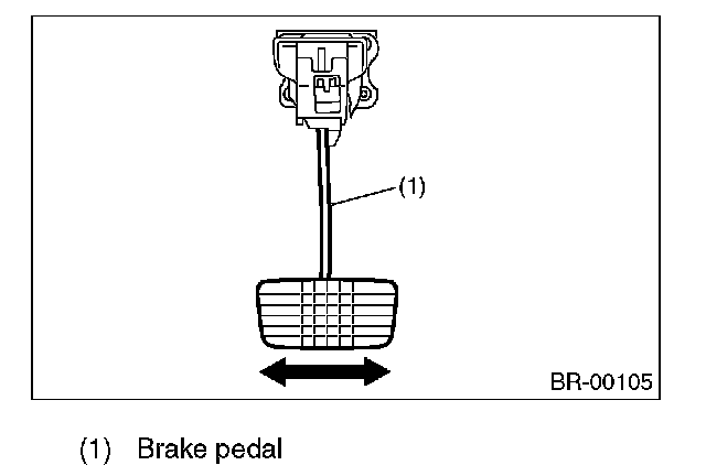 Brake pedal free play 0.5 - 2.0 mm (0. 02 - 0.08 inch) [Depress brake pedal pad with a force of less than 10 Nm (1 kgf, 2 ft. lbs.).]