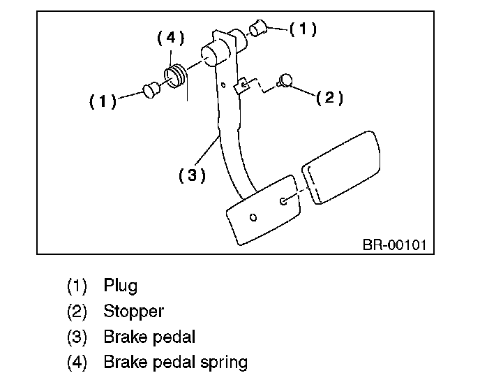 3. Align bores of the pedal bracket, clutch pedal and brake pedal, attach the brake pedal return spring, and then install the pedal bolt.